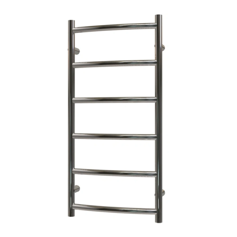 This versatile wall-mounted towel rail measures 975mm in height and 500mm in width, featuring six elegantly curved bars that not only elevate its aesthetic appeal but also enhance its functionality. Imagine the perfect arrangement of your towels, expertly designed to minimise moisture retention and maximise airflow. The rounded shape behind the towels accelerates the drying process, making it as efficient as it is stylish. With its eye-catching stainless steel finish, this fixture seamlessly complements a variety of modern bathroom styles, especially those that embrace chic, neutral colour palettes.