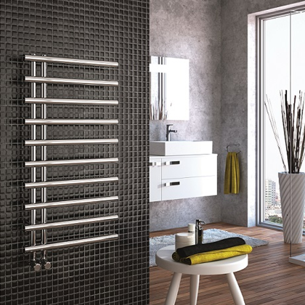 The Radox Linx 750mm x 500mm Chrome Heated Towel Radiator is a compact yet powerful addition to any bathroom, combining efficient heating with a sleek, space-saving design.