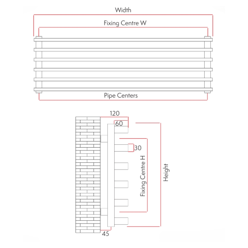 With six continuous arms, each 30mm thick, this distinctive horizontal radiator provides ample space for hanging and drying towels. The arms extend a generous 60mm from the pipe centres, creating a shelf-like effect that accommodates multiple towels, thanks to its impressive length of 1200mm. Additionally, five more bars are available, ensuring plenty of room for effective drying. Beyond its functionality, the sleek design and grey metallic finish add a touch of contemporary elegance, making this radiator a true standout in modern bathroom décor.