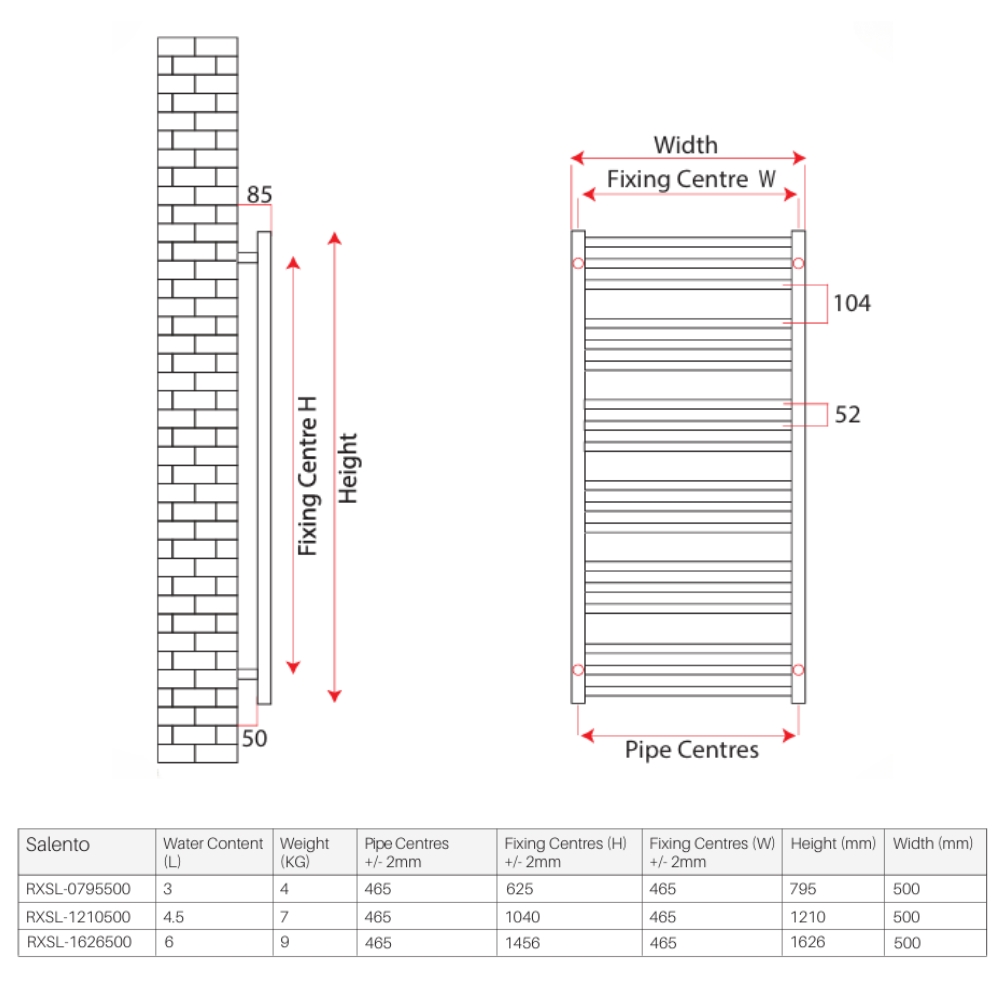- Please Note: Please allow a minimum of 100mm for valves; summer element will affect pipe centres; flow and return can be reversed.