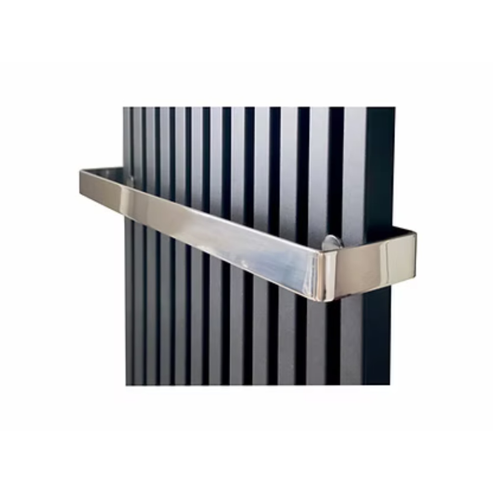 The Radox Vertica D 535mm Stainless Steel Radiator Towel Bar is an elegantly designed radiator accessory finished in stainless steel, intended to offer additional hanging space for the Radox Vertica D Vertical Radiator series. It is expertly designed to encircle the vertical bars of the bathroom radiator and can hold several towels.