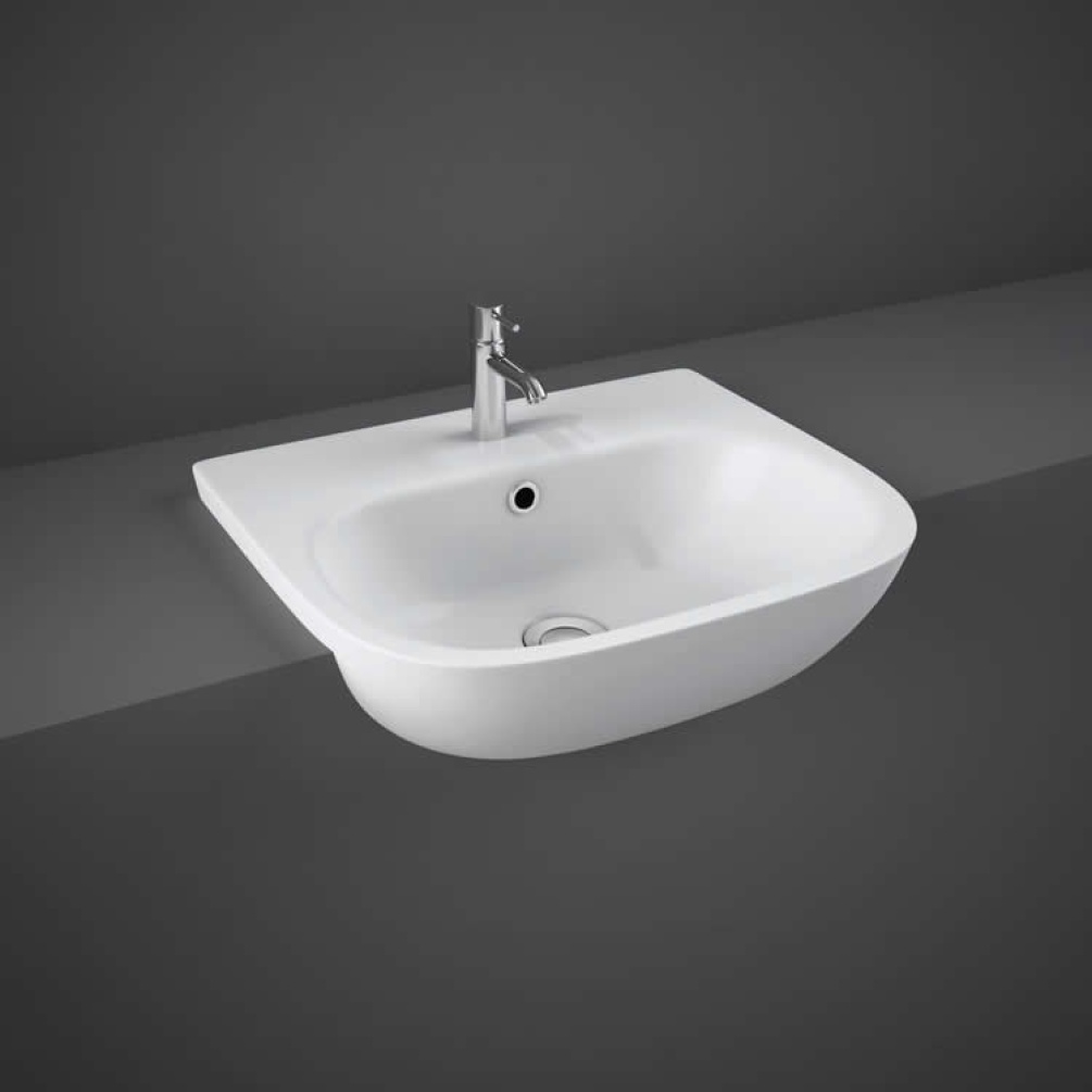 Designed to sit on shelves, worktops and units, this semi-recessed basin features a crisp white finish, with a single tap hole design that would make a statement in any modern bathroom.