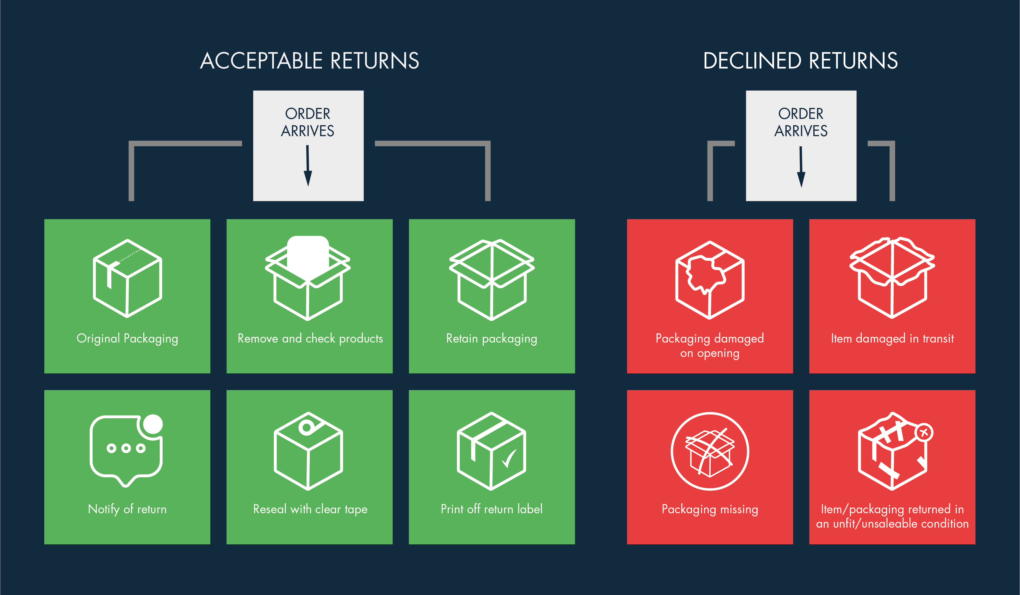 - Arrange the return via our returns portal (if required) Arrange a Return - you will be directed on which option to select (follow the steps above for more information)