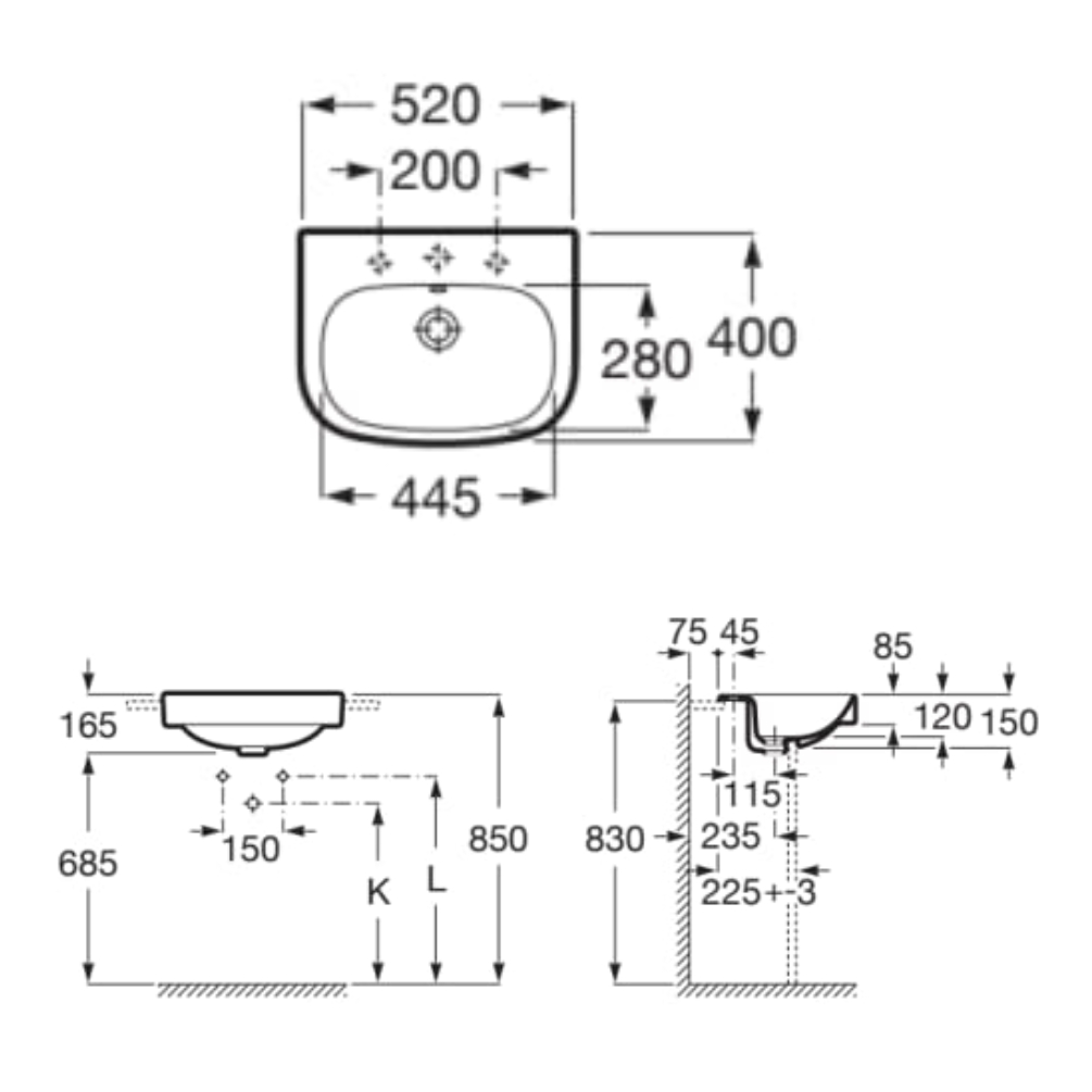 This elegantly designed semi-recessed basin features soft, curved edges seamlessly blending into a straight back. Measuring a sleek 520mm in width and 400mm in depth, it offers a generous 3.75-litre capacity bowl, providing ample room for comfortable handwashing. Meanwhile, the single tap hole is ready for your choice of basin mixer tap, while the built-in overfill system effectively prevents spills.