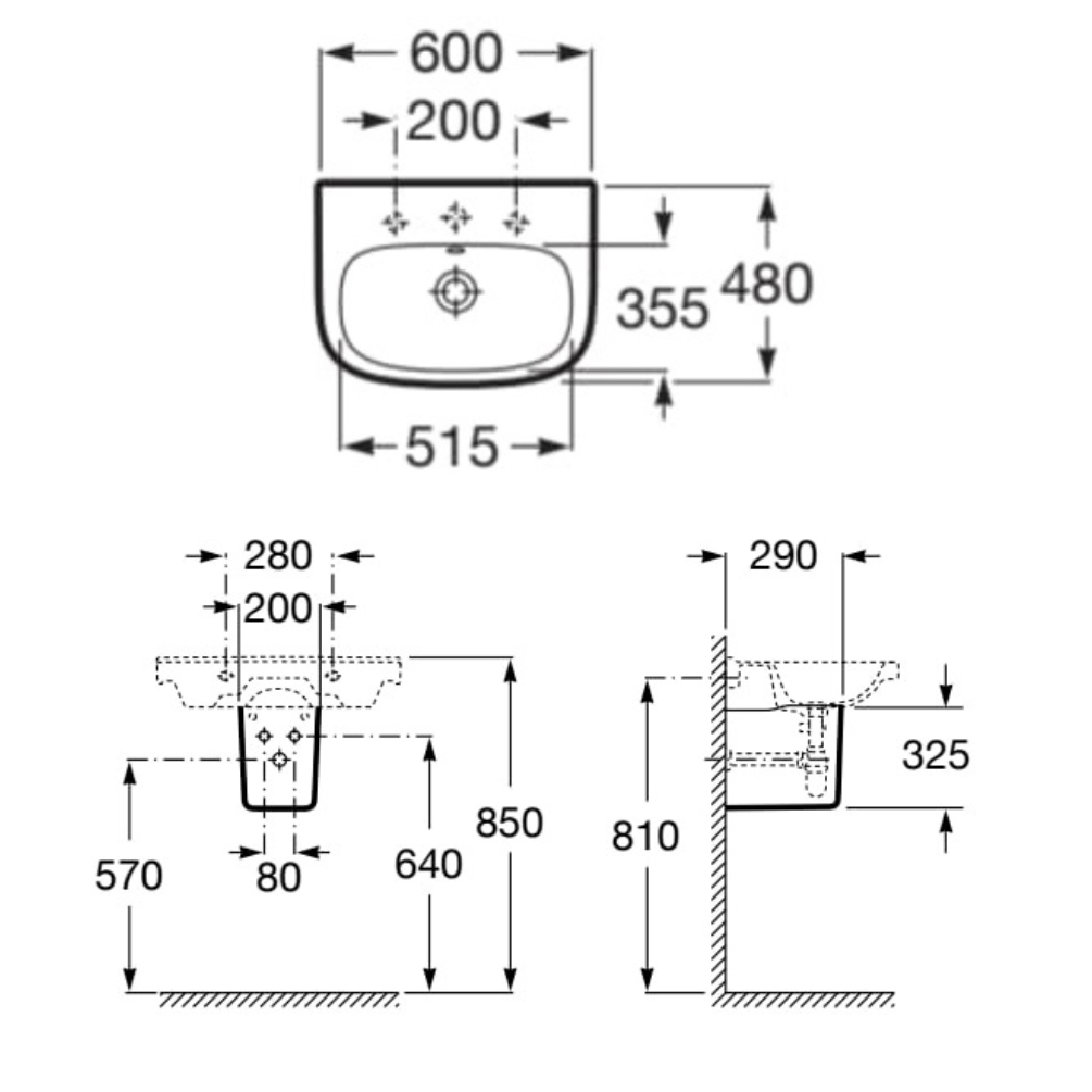 The semi-pedestal is a perfect match for the basin's graceful curves, conserving valuable floor space while forming a cohesive and stylish unit that integrates beautifully into your bathroom wall. Not only does it improve the overall appearance, but it also effectively hides unsightly plumbing, resulting in a neat and polished finish. Together, the basin and semi-pedestal equal a height of 820mm.