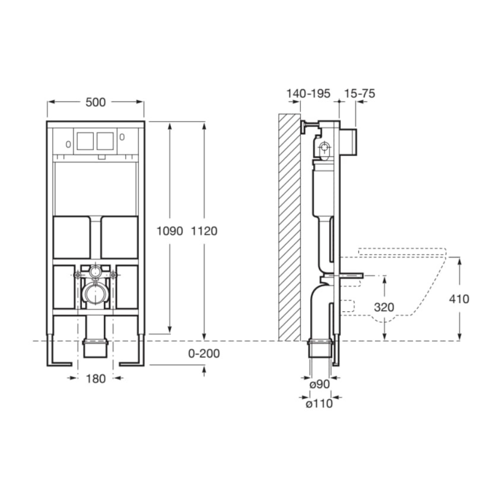 The Roca Duplo 1120mm Wall Hung WC Frame with Dual Flush Cistern represents an advancement in WC systems and is the best solution for fitting your wall-hung toilet to the wall and creating a minimalistic finish.
