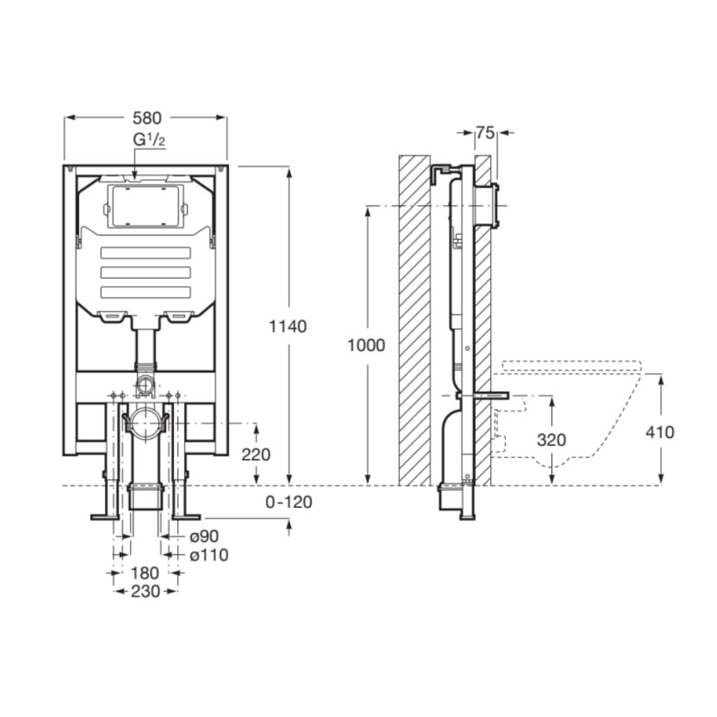Constructed with robust stainless steel, this frame stands tall at 1140mm and measures a sturdy 580mm in width. With height-adjustable feet, it ensures a flawless fit for solid and stud wall installations, providing unbeatable support for your toilet.