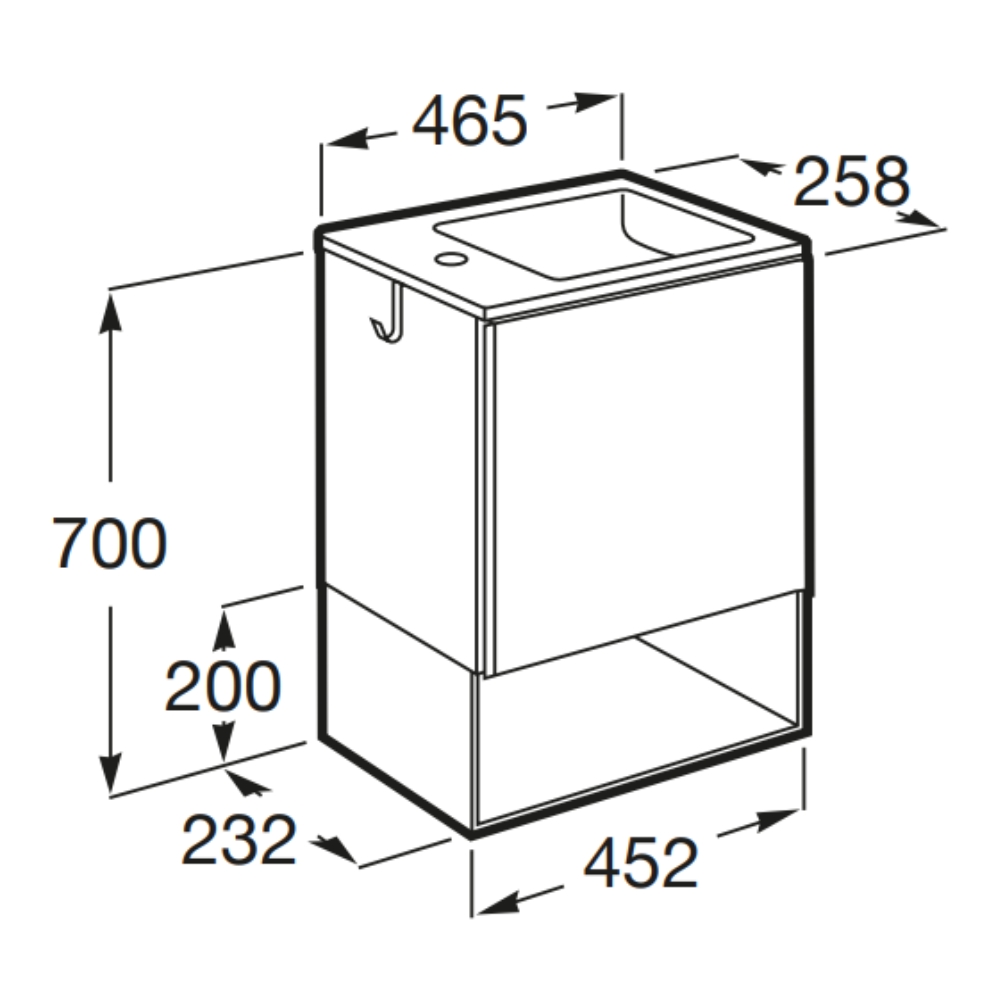 Now, let’s discuss the dimensions – the unit and basin reach a combined height of 700mm, with a length of 465mm and a depth of 258mm, making it an unobtrusive, streamlined addition to your bathroom. Additionally, the entire unit is fully reversible, allowing you to adjust the orientation of the basin and door to fit your specific bathroom layout.