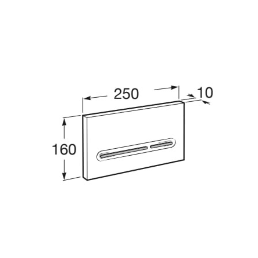 With its impressive dimensions of 250mm in length and 160mm in height, this elegant white-coloured rectangular backplate offers a minimalist, modern design. In the centre, a gentle sloped cylinder form features two distinct, protruding buttons that give you the power to choose your flush volume based on the needs of your concealed cistern.