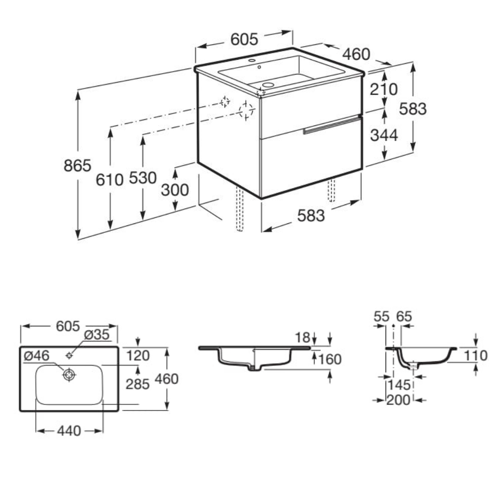 Raised off the floor, this entire piece of bathroom furniture, measures 583mm in height, 605mm in length, and has a depth of 460mm. Ultimately, it’s a compact yet practical piece that fits seamlessly into various modern bathroom styles.