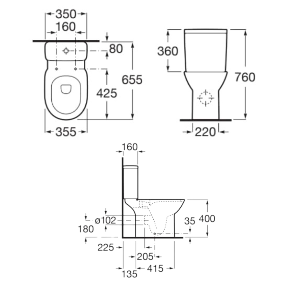 This close-coupled toilet showcases rounded curves throughout, from its elegantly arched open-back design to the dual flush cistern, soft-close seat and cover, and luxurious rimless pan. Each aspect adds to an elegant aesthetic from any viewpoint within its dimensions of 655mm in depth and 760mm in height. Furthermore, the close-coupled setup provides a streamlined and cohesive appearance, where the cistern is connected directly to the pan.