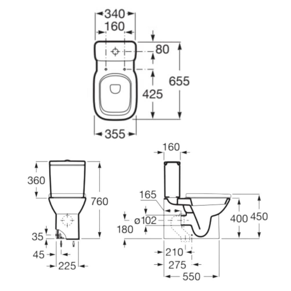 Perfectly coordinated across its entire arrangement, this close-coupled toilet showcases a box rim pan with a closed-back design that sits flush against the wall, complete with a square dual-flush cistern and luxurious soft-close seat and cover. Measuring 655mm deep, 760mm tall, and 355mm wide, this toilet’s streamlined silhouette embodies the essence of modern elegance, capable of effortlessly integrating with other bathroom fixtures.