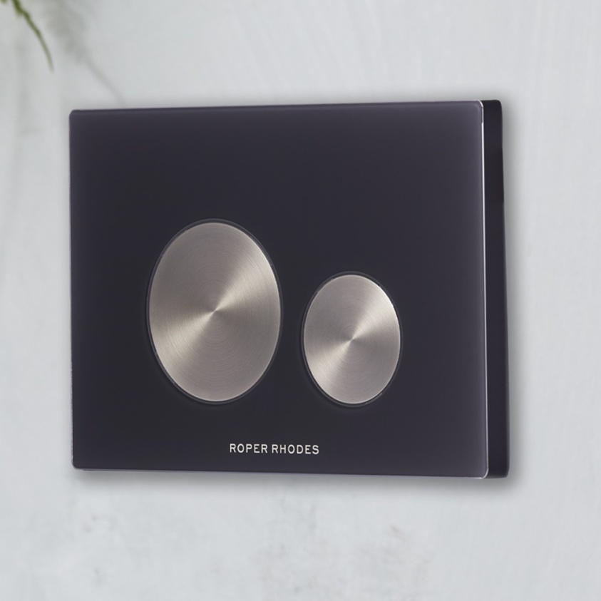 Decorated with the Roper Rhodes logo as a mark of quaity, and the pinnacle of their collection is this Roper Rhodes Matt Black Glass Dual Flush Push Plate.