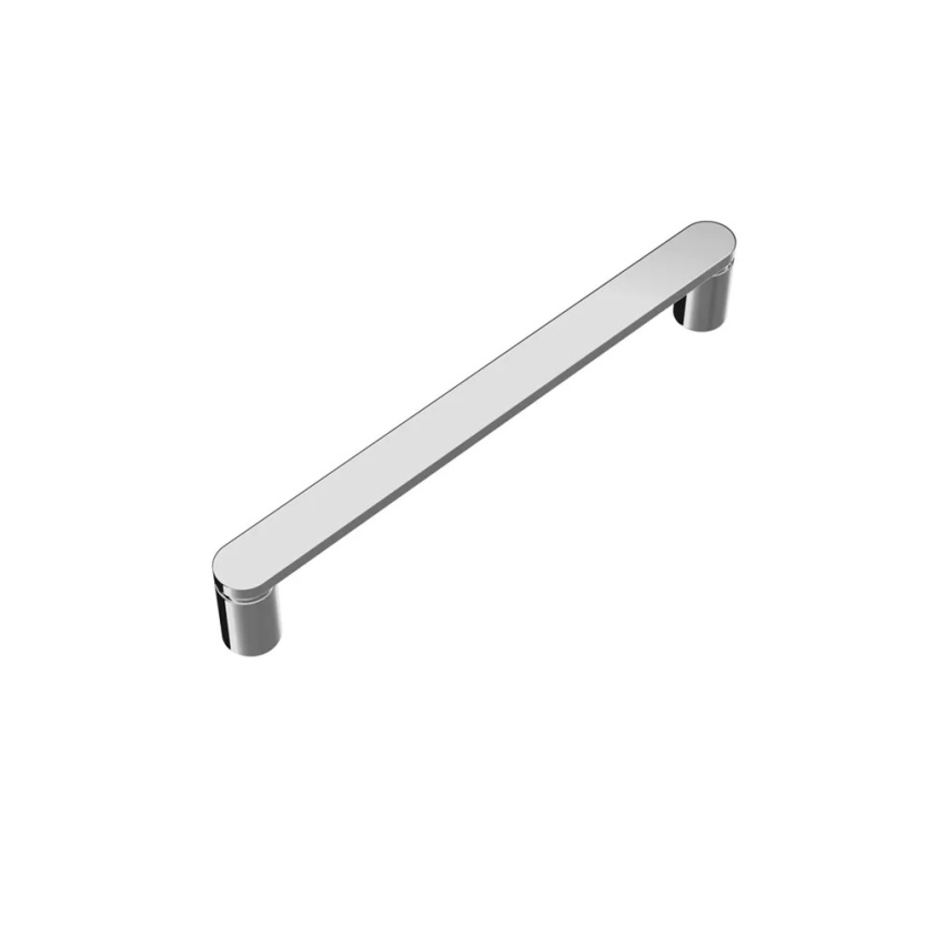 With 160mm centres, it has a horizontal bar that has rounded ends in a long, capsule like shape. This is connected to two inward, rounded connections that fit with fixings to securely hold it in place to the chosen drawers or doors. It can be used for both modern and traditonal-styled units in their range.