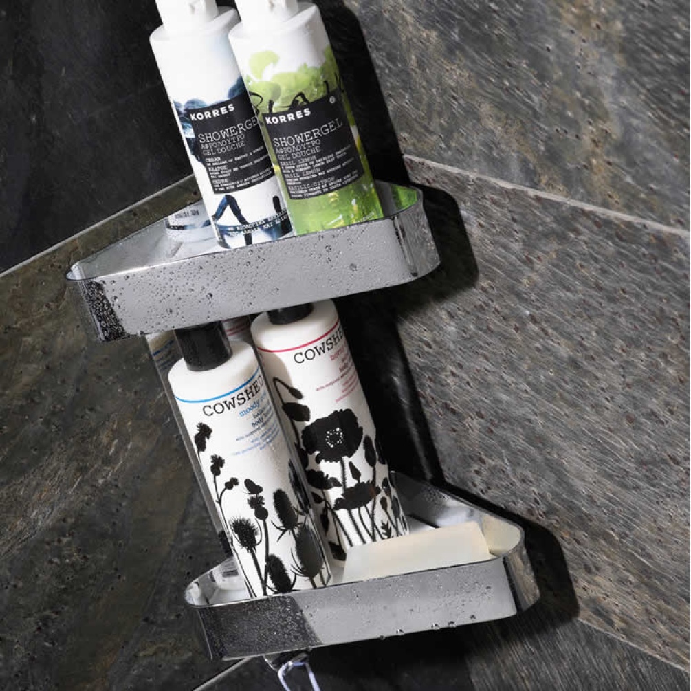 Featuring a sleek chrome finish, the Halo Double Corner Basket makes the perfect option for any bathroom.