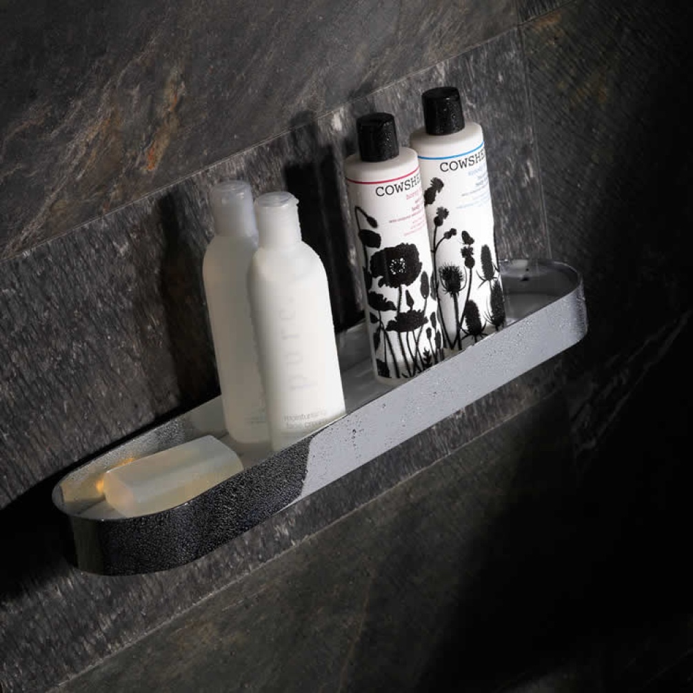 The Roper Rhodes Halo chrome finish large bottle basket will compliment the modern bathroom.
