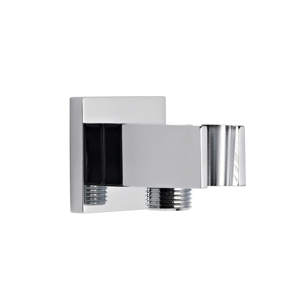 This chrome finished wall elbow features a contemporary, practical design with an integrated handset holder that would suit any modern bathroom.