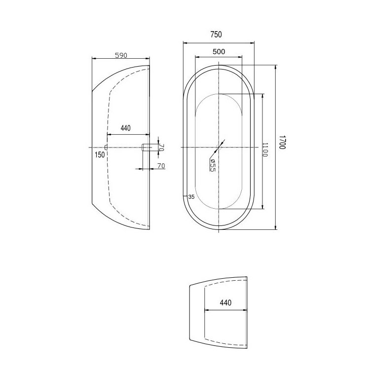 With its gentle, oval shape and serene white finish, this freestanding bath simply oozes relaxation. It's constructed from acrylic and reinforced fibreglass for a smooth, durable build, and can be positioned anywhere in your bathroom as long as the plumbing allows. As a double-ended bath with a length of 1700mm and a width of 750mm, the Auron is perfect for both solo bathing and couples looking to indulge in a romantic dip together.