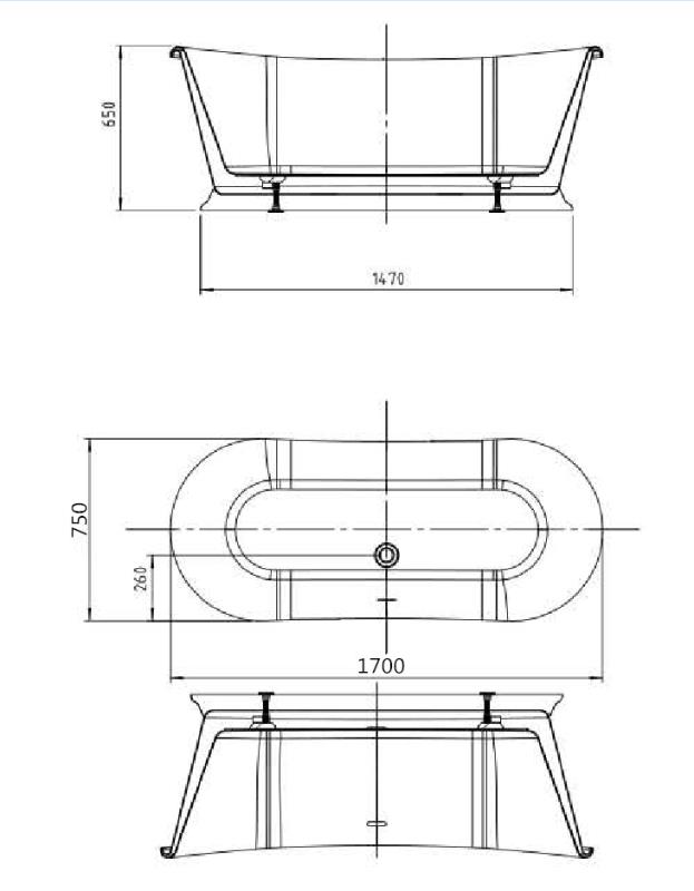 - Painted finish shown in second image of bath is RAL 9005 colour