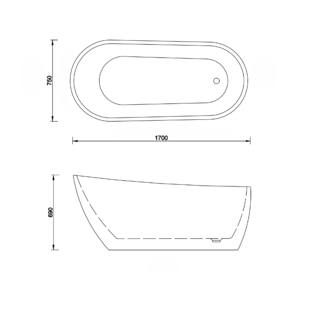 It is made from acrylic and is finished in a bright, gloss white finish with a thin rim around the entire bath. As a single-ended bath, it is only suitable for bathing from the the one end, but the 1700mm length and 750mm width offers a comfortable amount of space for reclining back into.