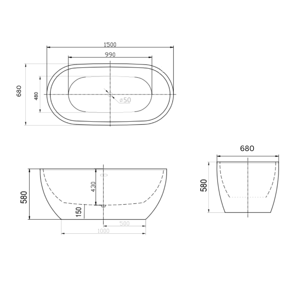 With compact measurements of 1500mm in length and 680mm in width, this double-ended freestanding bath accommodates the busy needs of modern life, functioning well in both smaller bathrooms and larger spaces. Though it has a compact design, its shape is perfect for solo use, but even better suited for two, offering ample room to enjoy those peaceful moments together.