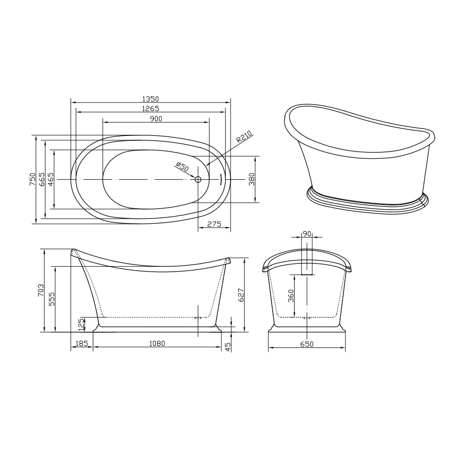 As a slipper bath, it has one end higher than the other for any user to relax into with a single-ended design, and is complemented by a roll-top rim edge consistent with any traditional-styled bathtub. Along with the smooth oval shape, it also features a ridged plinth-like base offering another stylish touch. It is manufactured from 5mm acrylic, and is finished in a bright, gloss white finish that can be included as part of lots of bathroom colour schemes. The bath also has an integrated overflow, and comes pre-fitted with a built-in click clack waste. With no tap holes, it can be placed next to a wall for pairing with stunning wall-mounted bath taps or freestanding bath taps.