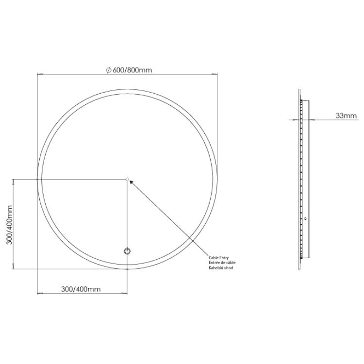 Measuring a generous 800mm in height and width, or a more modest 600mm in diameter in the case of its smaller model, this backlit illuminated mirror can provide ample lighting and embellishment for any size of space.