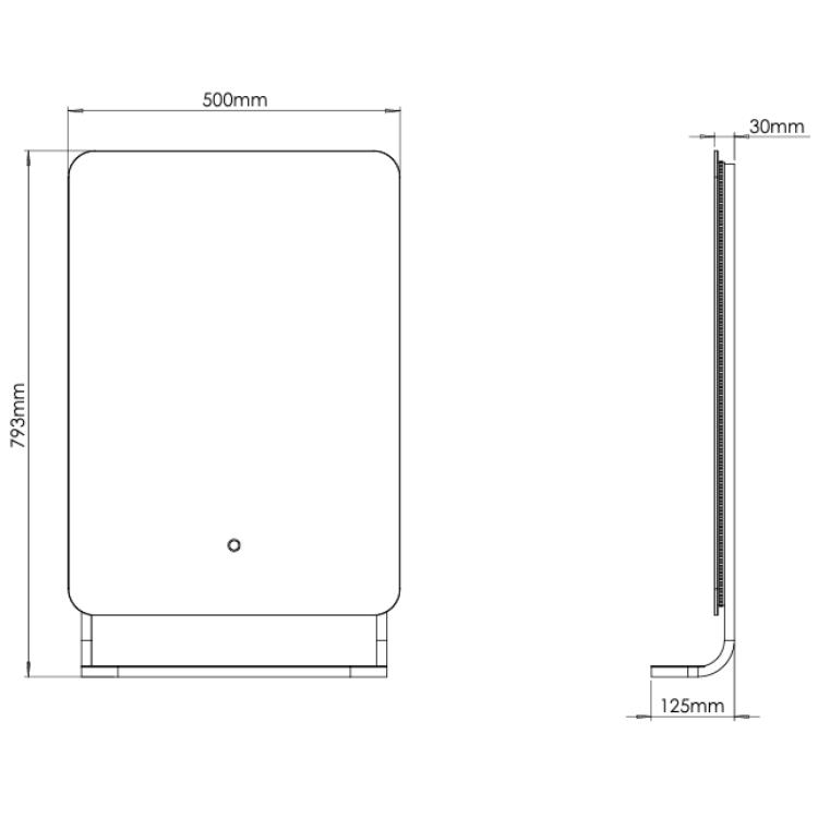 - Dimensions: 500mm width x 800mm height x 30mm depth