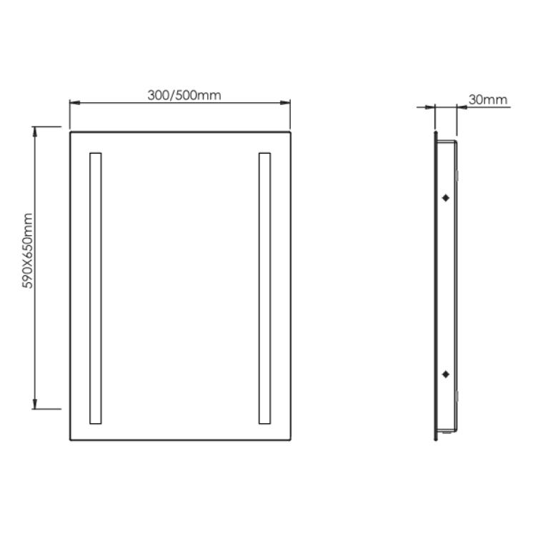 - 500mm width x 650mm height x 30mm depth (SE34495C0)