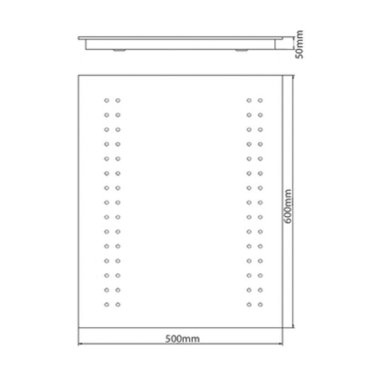 At the bottom of the mirror face, which measures 500mm in width and 700mm in height, there is an infrared sensor switch that operates the stunning LED lights that border both sides of the Uno. The moment the sensor detects your hand underneath it, cool white light begins to diffuse across the surface of the mirror. Its soft glow is best suited to adding some ambience to your relaxing evenings or night-time visits to your bathroom, while still giving you enough light to lend a hand during the morning routine.