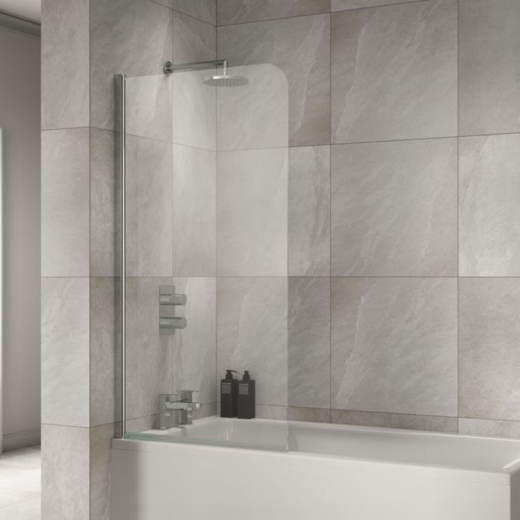 This stylish bath screen from the Sommer range features 6mm toughened glass and curved edges that will compliment any modern bathroom.