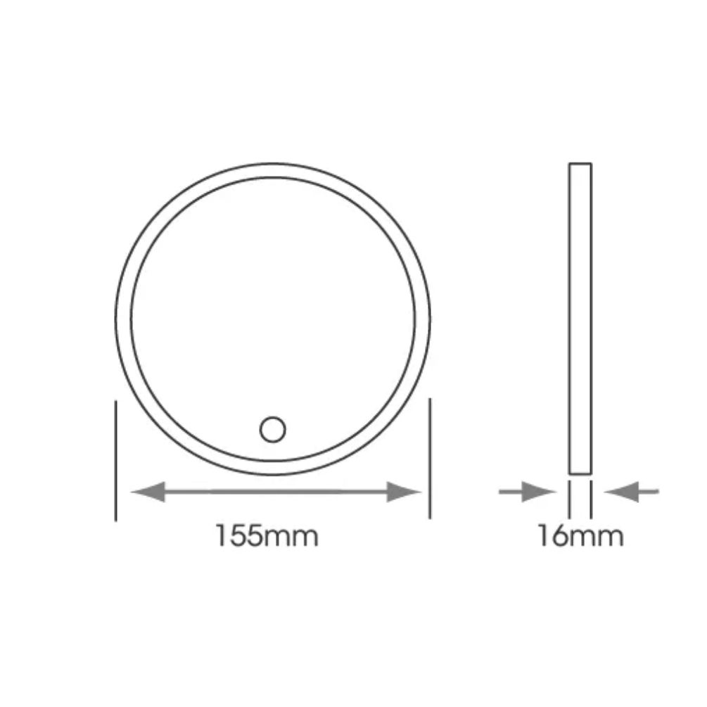 Measuring 155mm in diameter and 16mm in depth, the circular face of this illuminated bathroom mirror is enclosed within a ring of daylight white LEDs, which are activated and deactivated using the touch sensor button towards the bottom of the mirror face. Unlike most conventional mirrors, this magnifying mirror has double magnification, making it perfect for when applying makeup or completing general grooming.