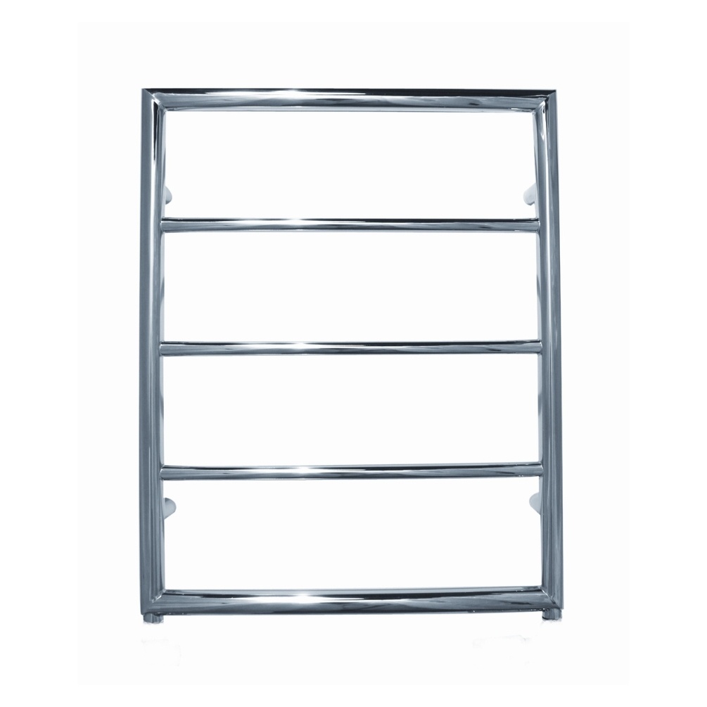 This exceptional wall-mounted electric towel rail features an almost symmetrical, compact design measuring 650mm tall by 520mm wide, showcasing three rounded horizontal bars housed within a striking, unified rectangular border that follows the same rounded pipe design. This boundary framework improves heat distribution by increasing surface area while creating a striking visual impact through meticulous geometric design. Made from high-quality polished stainless steel with a brilliant mirror finish, this radiator makes a bold contemporary statement that characterises modern bathroom spaces with a sense of definitive architectural elegance.