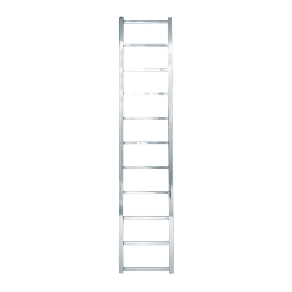 Ascending to an impressive 1650mm height whilst maintaining a space-conscious 350mm width, this wall-mounted electric towel rail presents a striking ladder rail with bold, squared geometry. Both the vertical uprights and the eleven horizontal bars display crisp angular edges rather than traditional rounded pipes, creating a commanding vertical presence that draws the eye from floor to ceiling. With consistent 140mm spacing between each bar, it establishes a rhythmic fixture that complements modern bathroom aesthetics, magnificently enhanced by its polished stainless steel finish that catches and reflects light with mirror-bright intensity along its entire elongated form.