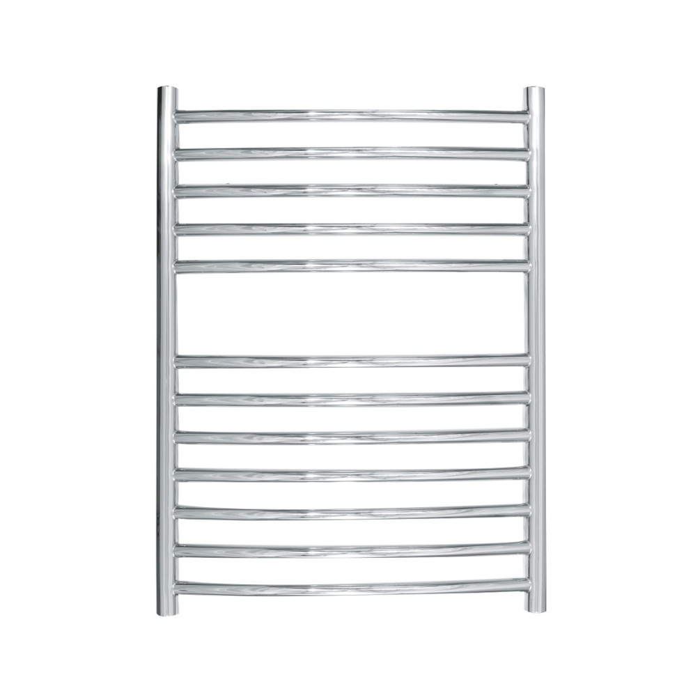 The Sussex Range by JIS Camber 700mm x 520mm Polished Stainless Steel Curved Heated Towel Rail introduces sculptural depth to bathroom walls, a ladder rail that transforms functional bathroom heating into a statement of contemporary design.