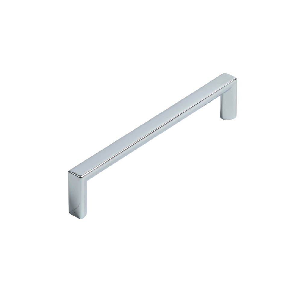 This bathroom furniture handle features a sleek square-profile bar that maintains its geometric consistency from end to end. The minimalist design celebrates restraint and precision, offering comfortable handling through its refined proportions, whilst the seamless chrome finish maintains its brilliant lustre throughout the bathroom environment.