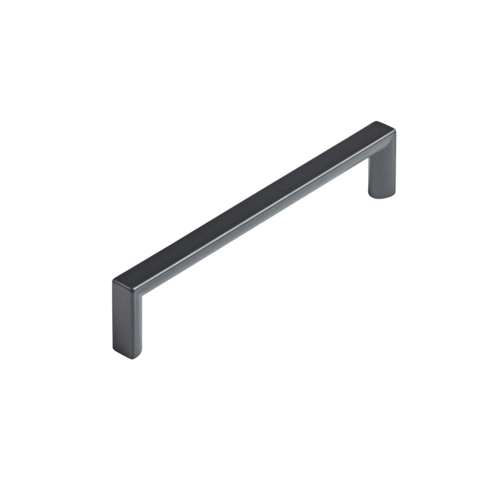 This bathroom furniture handle showcases a streamlined square-profile bar that sustains its angular integrity throughout its entire length. The pared-back aesthetic embraces clarity and purpose, providing assured handling through carefully proportioned dimensions, whilst the flawless black finish introduces bold contemporary impact across the bathroom interior.