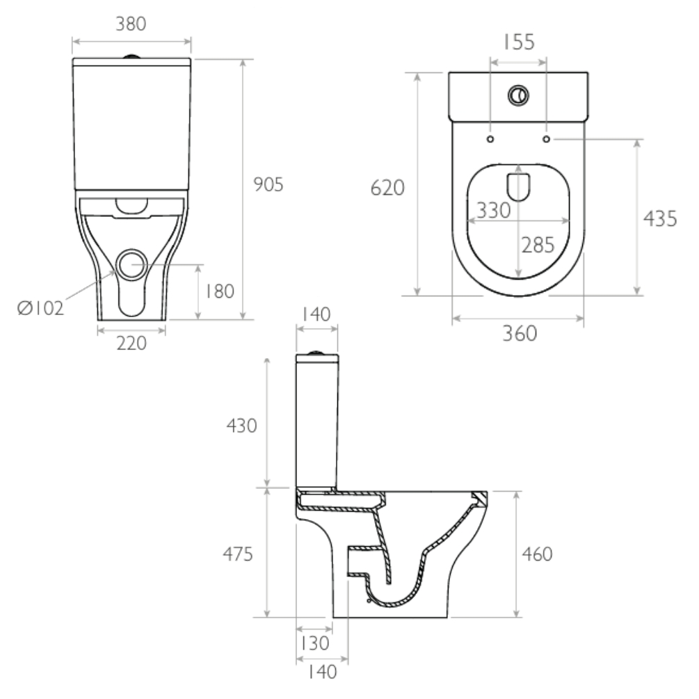 Showcasing an elegant open back design, this close coupled toilet breathes life into bathrooms focused on maximising space. Standing at a boosted comfort height of 460mm from floor to seat, it’s a fantastic choice for individuals with accessibility or mobility challenges, as well as those who simply appreciate a taller toilet. Additionally, as part of the Micra Evo series, it furnishes a short projection of just 620mm, creating a sleek profile that doesn’t compromise on floor space, making it perfect for the needs of modern bathrooms.
