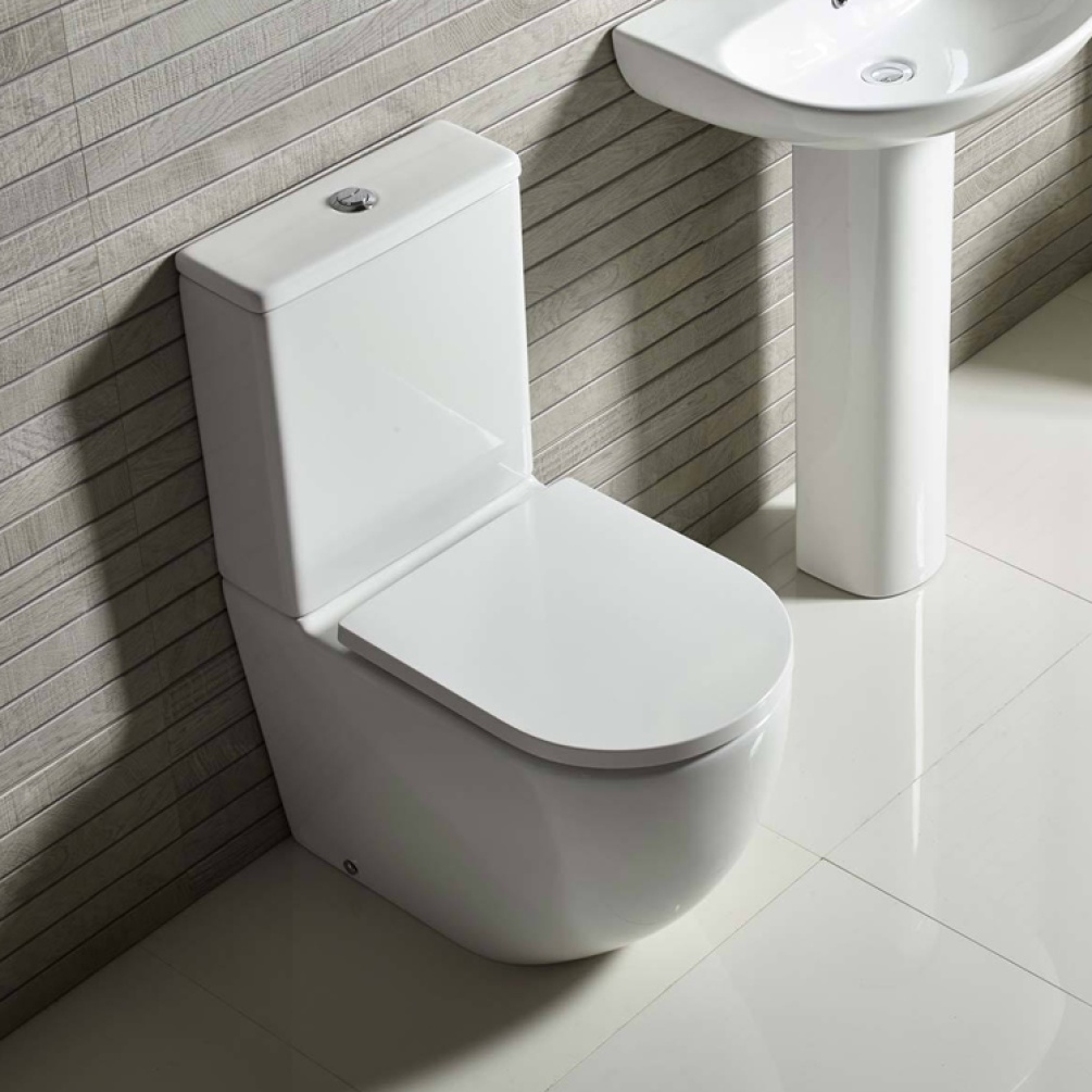 This toilet presents a neat solution with its close coupled design, which merges the cistern and pan into a compact unit. Its closed back configuration fits snugly against the wall, effectively hiding unsightly plumbing. Visually, the linear closed back contrasts beautifully with the rounded, growing pan at the front, creating a graceful curve that maintains a D-shaped aesthetic. This look results in a unique style that is quite rare among toilets today.
