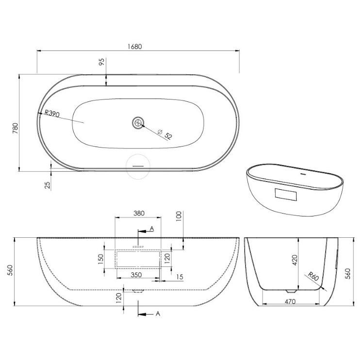 Measuring 780mm in width and 1680mm in length, the rear rim of this freestanding bath expands to 95mm in depth, providing you with a subtle ledge on which you can rest your bathroom products, as well as installing deck-mounted bath taps should you so wish. The additional magnetic back access panel additionally allows for easy installation, although the Tanaro Acrylic Freestanding Bath can just as usefully be paired with wall mounted taps or freestanding bath mixers if you desire.