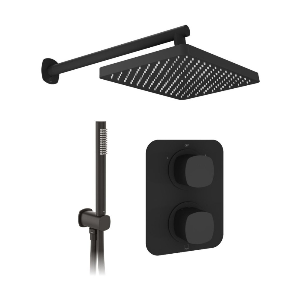 Comprising four products from the cost-effective Cameo range, this pack delivers a streamlined showering experience in tune with contemporary life. Each component is sturdy, durable and reliably engineered, united through their efficiently squared shape and smooth black finish.