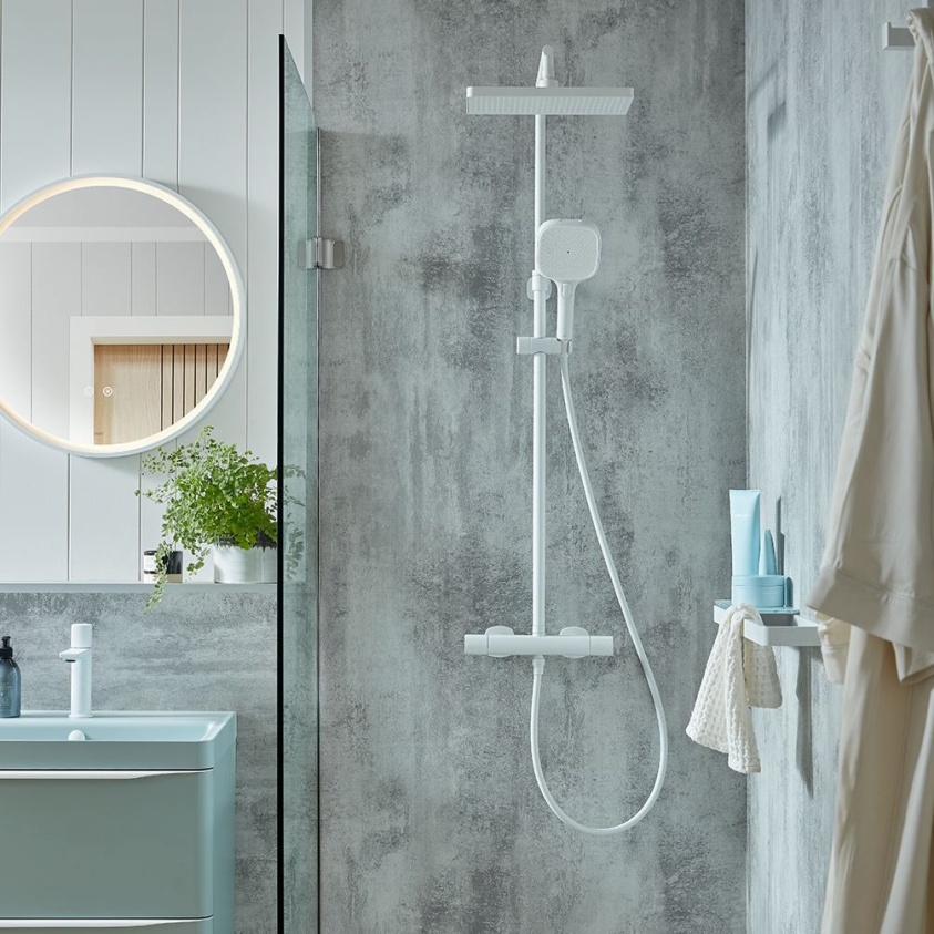 The main shower head, finished in a pristine matt white, exudes elegance and sophistication. Its large size of 300 x 200mm ensures a luxurious rainfall like flow of water, for an invigorating and refreshing flow of water. The hand held shower offers versatility and practicality, allowing you to easily direct the water wherever you desire, whether it's for rinsing off or even cleaning, it is the perfect solution for your every day needs. The matt white finish adds a touch of designer style to and seamlessly blends with any contemporary bathroom style.