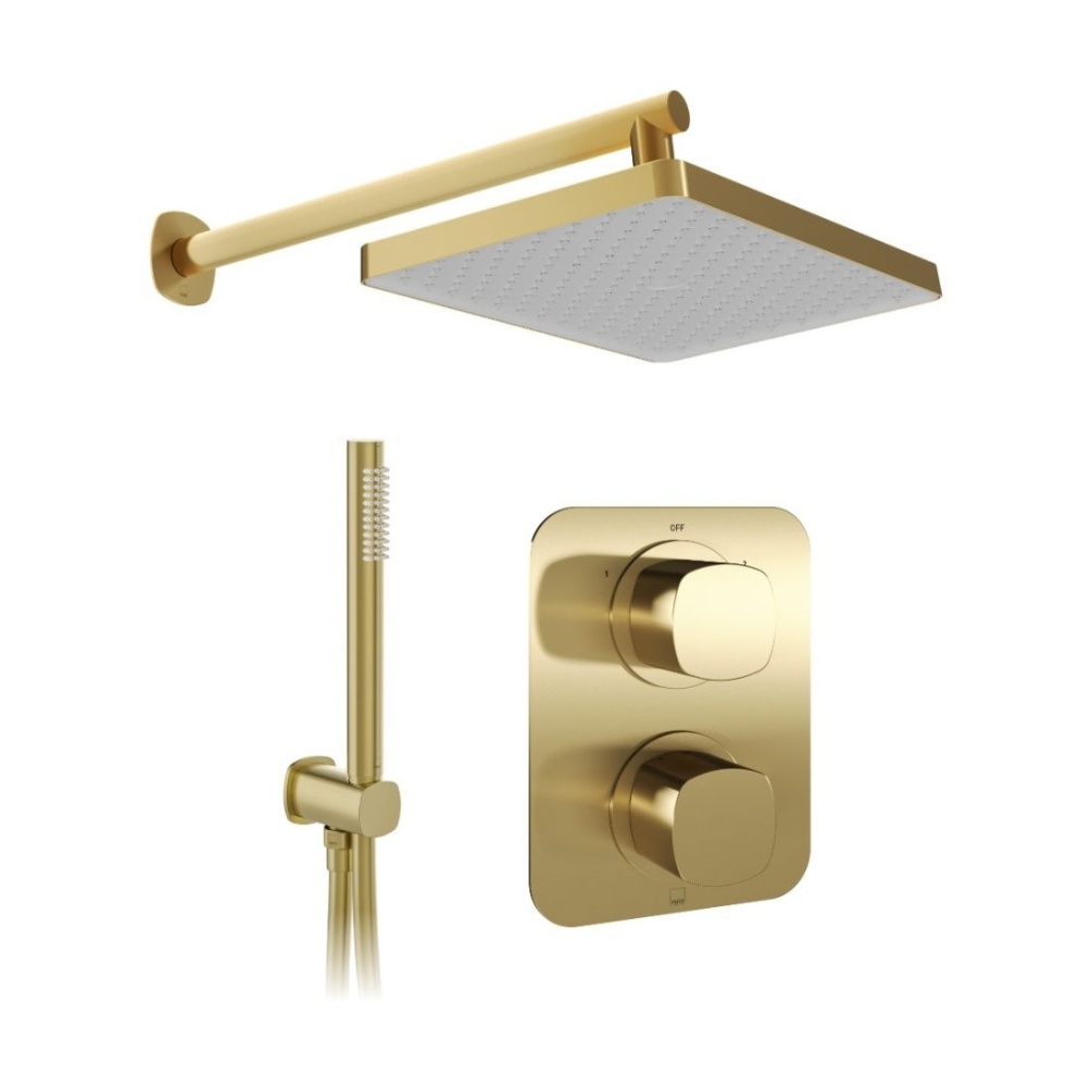 This thermostatic shower system regulates water heat, reacting to pressure changes automatically to preserve your chosen temperature setting. This eliminates the danger of scalding or freezing spikes, cleansing your mind of worry as you settle in for a pleasant and relaxing shower. The pack includes both an overhead shower and a mini shower handset that's connected via an integrated outlet. The former engulfs you in swathes of lush, optimised water spray, while the latter delivers precision washing and plenty of bathing flexibility.