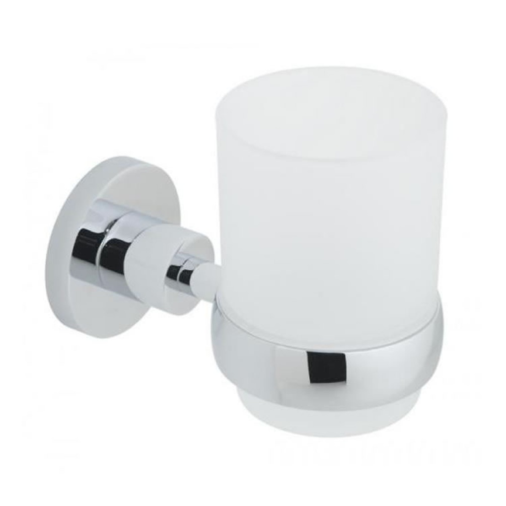 This tumbler and holder features a chrome finish and a stylish frosted glass tumbler that would suit any contemporary bathroom.