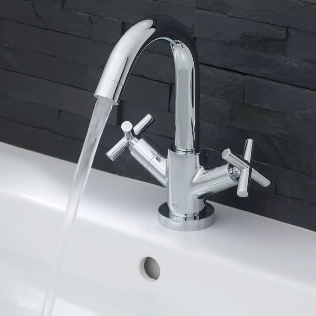 This towering mono tap features a solid brass build with a smooth chrome finish, and boasts a pair of beautiful crosshead handles to intensify its eye-catching appeal. These twin handles allow you to control hot and cold water flows individually, and a built-in water flow regulator protects against unecessary wastage.