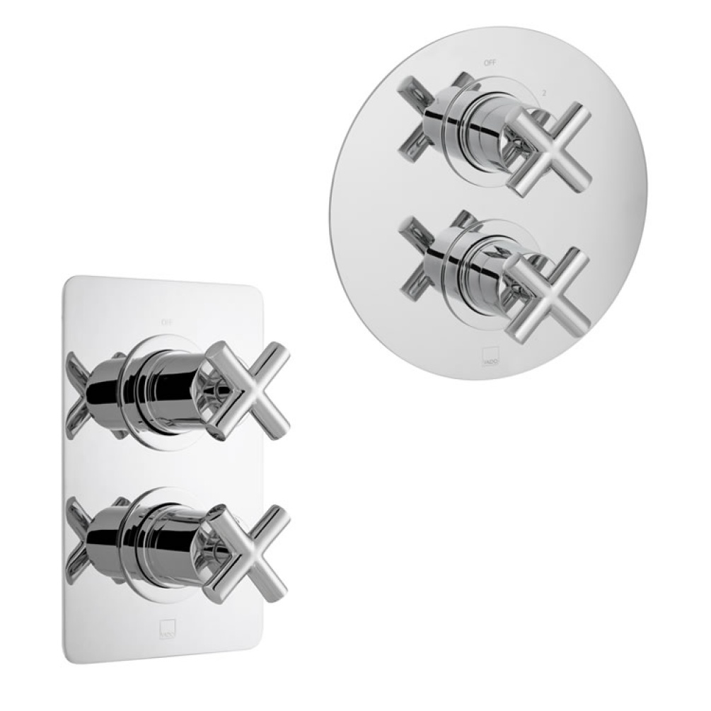 Boasting a dazzling chrome finish and a pair of beautiful crosshead handles, this concealed shower valve will fit perfectly into any contemporary design scheme. As a two-way valve, it provides the capacity to divert water flow between two individual shower accessories. These can include shower heads, shower handsets, bath spouts, or even bath overflow fillers.