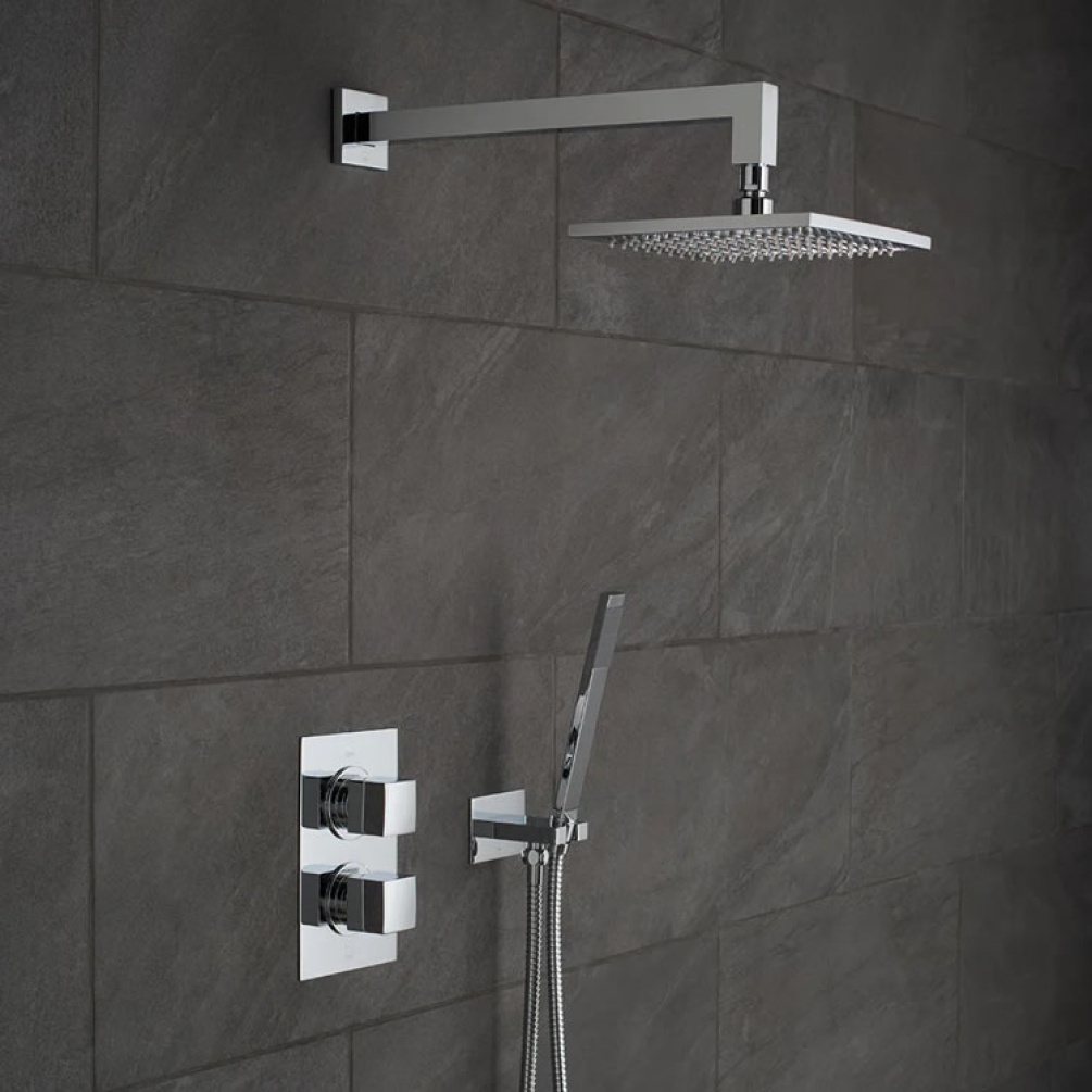 - Square concealed twin outlet thermostatic shower valve