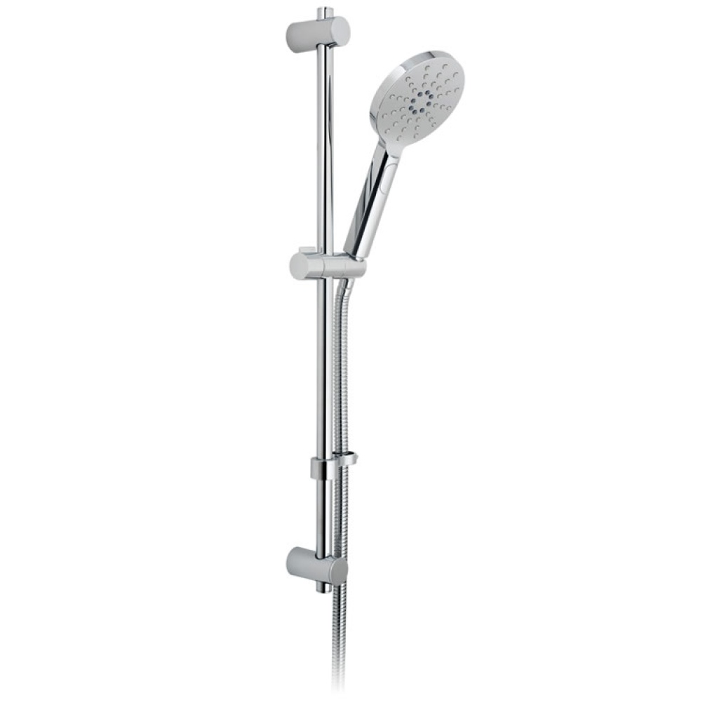 This chrome finished slide rail shower kit features a practical handset with three spray functions that would suit any contemporary bathroom.