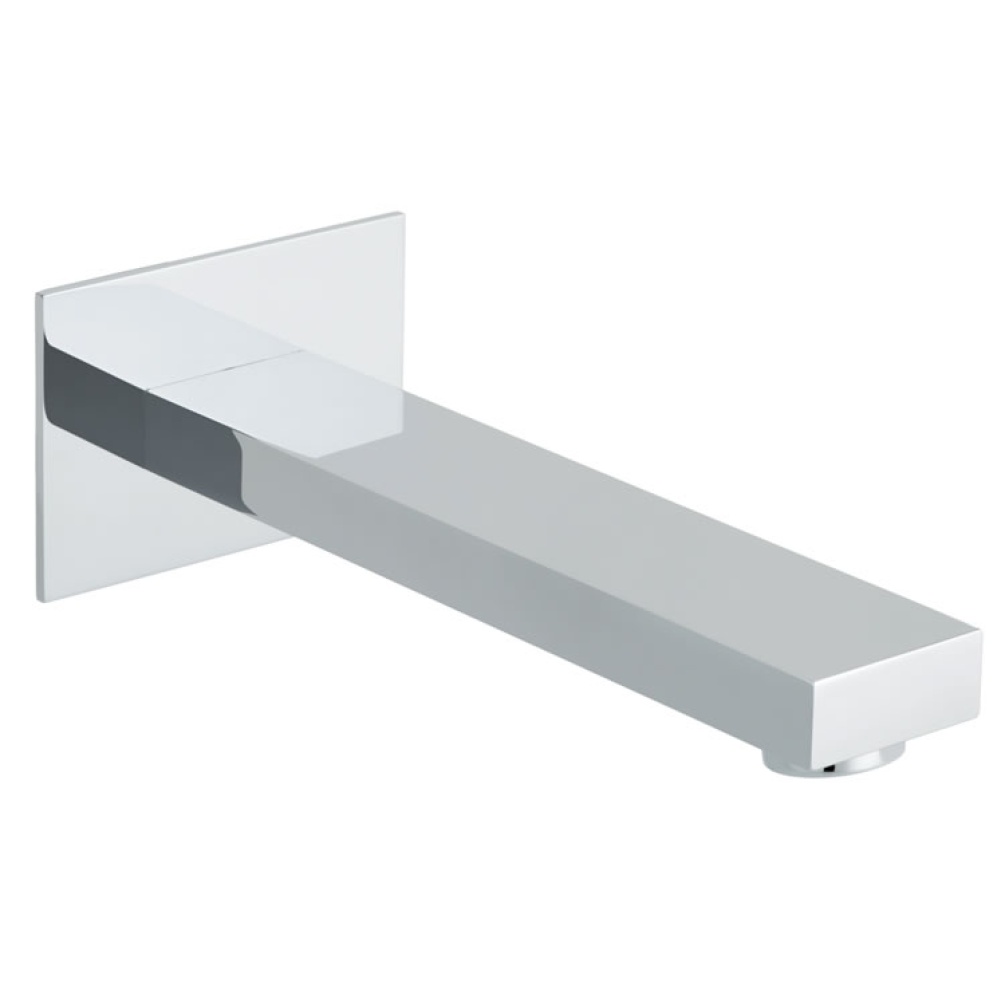 This wall-mounted bath spout features a cubic, angular design and a gleaming chrome finish. It can be paired with your choice of bath tap valves to suit your bathroom's scheme.