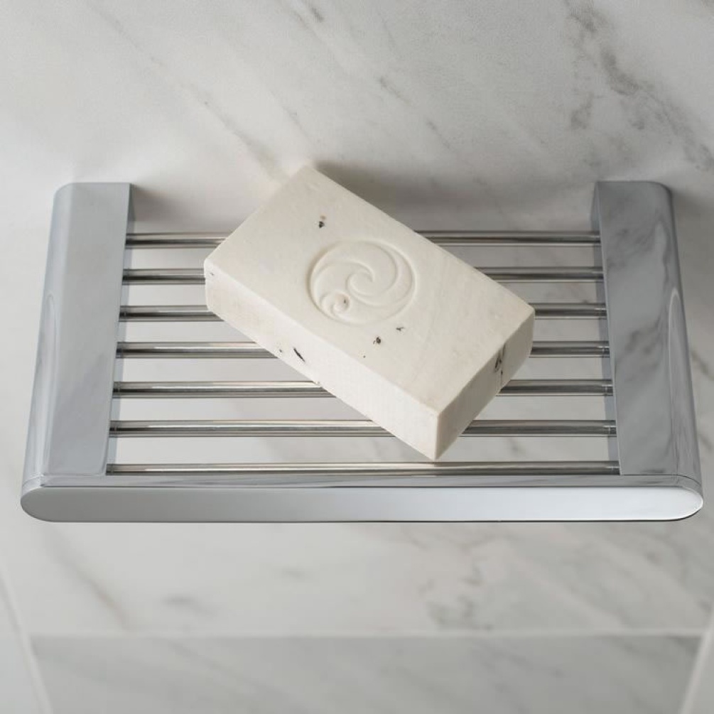 This chrome finished soap holder features a contemporary design that provides a practical storage solution for your bathroom soap.